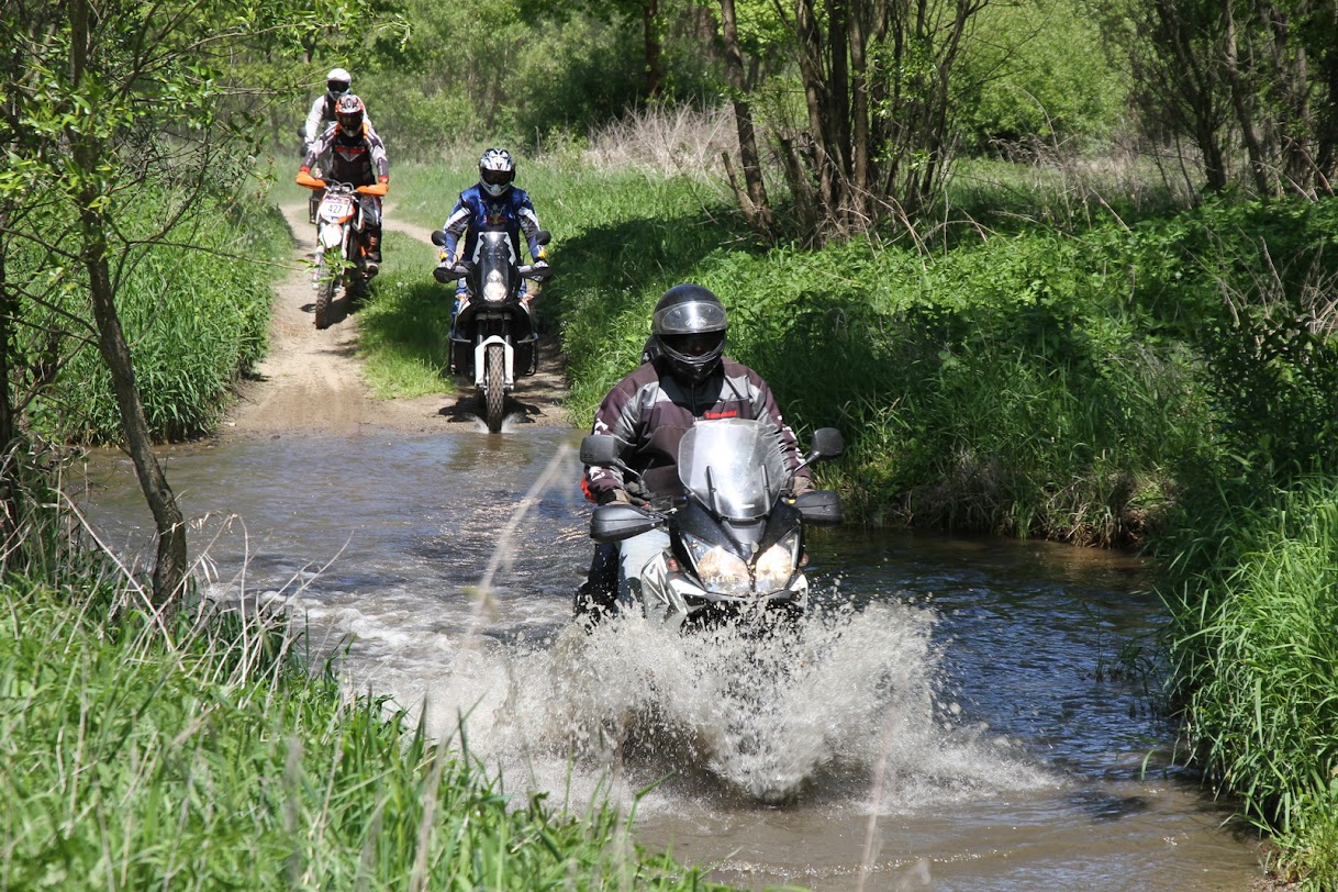 V sobotu sraz v devět ráno, vyzvedli jsme si startovní čísla - Sáša dostala číslo jedna a já třináctku. Celou trasu jsme jeli spolu s kolegou v VStrom klubu podle pravidla, že offroad by člověk nikdy neměl jet sám. Tak jsme na to byli tři. Začínalo se úvodním prologem, fáborkovanou cestou vyznačenou na motokrosové trati, aby si měli účastníci možnost vyzkoušet, zda se vůbec na offroad vyjížďku vydají nebo jestli se vrátí na základnu a vyzvednou si propozice k touringové jízdě po asfaltu. Vyjeli jsme v tandemu malý kousek a pak jsem si prolog projel sám a Sáša zůstala zrovna v cíli, protože jízda se spolujezdcem v lehkém terénu byla naše premiéra. Prolog se nejel na čas, měl jenom jasně vymezit obtížnost.